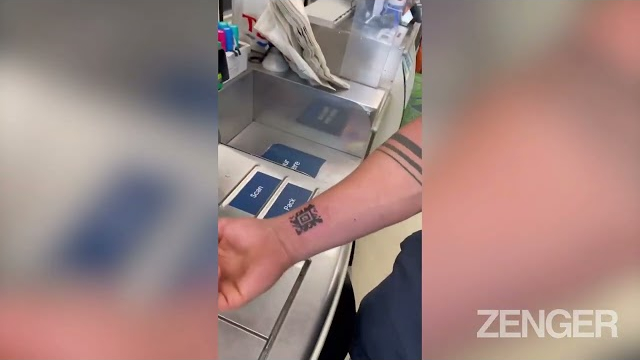 一家九口得省钱 男子把超市会员卡二维码纹在手上