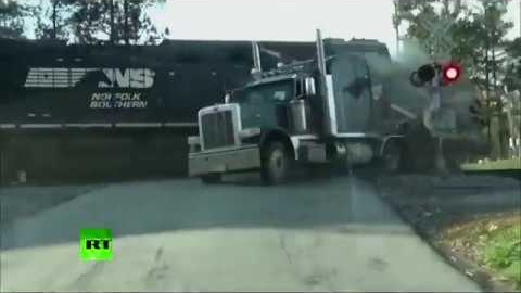 恐怖一幕:卡车卡铁轨 被拦腰截断