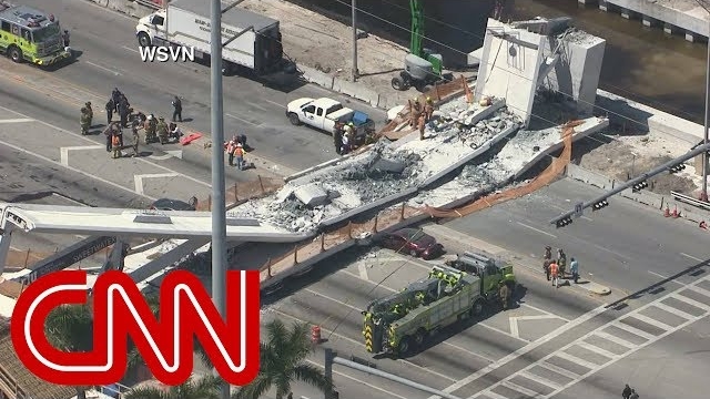 豆腐渣工程?迈阿密全新人行天桥突然垮塌