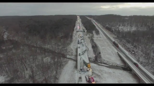 航拍画面惊人!密州近百辆车雪地连环撞