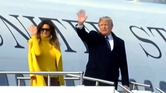特朗普贴心拥抱老婆 第一夫人终于多云转晴