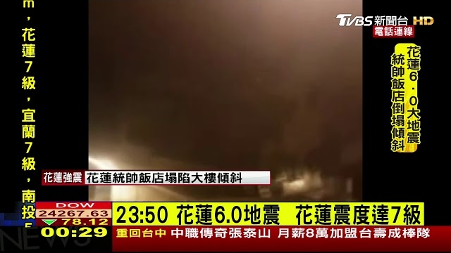 台湾15年最大地震已致2死202伤 深夜强余震不断
