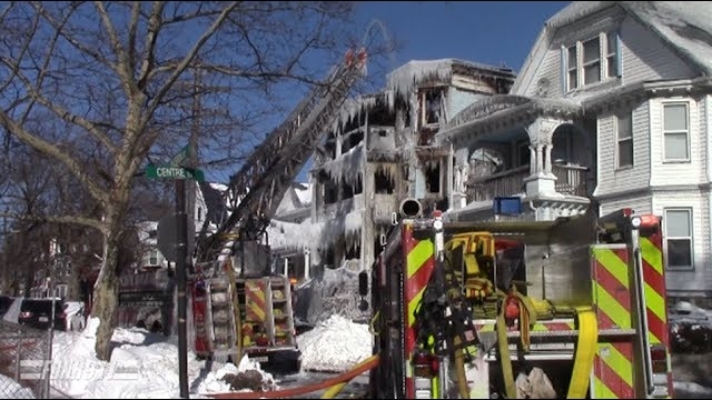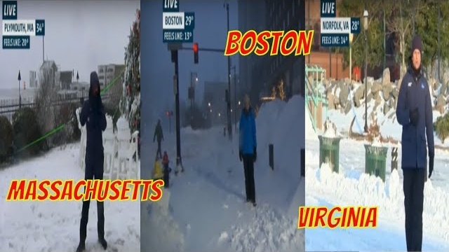 美国麻省遭暴风雪袭击 道路变“冰河”