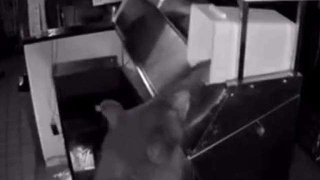 三只熊闯进科州披萨店 连吃带拿洗劫一空