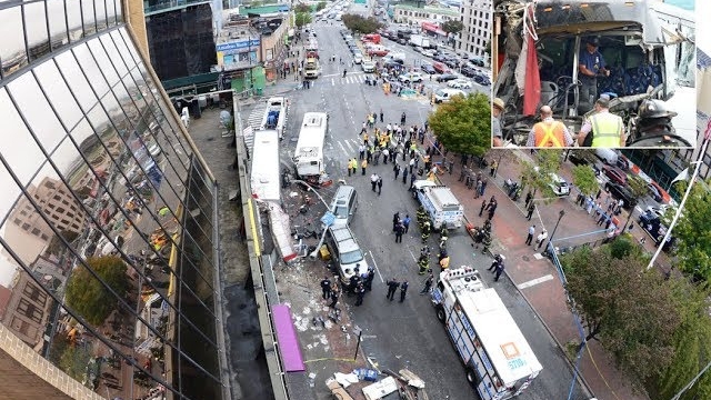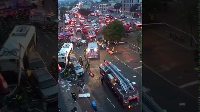 法拉盛发生重大车祸 公共汽车与私人巴士相撞