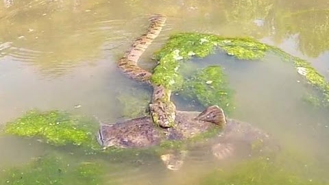 美国水蛇大战巨鲶 胜负难料 场面火爆