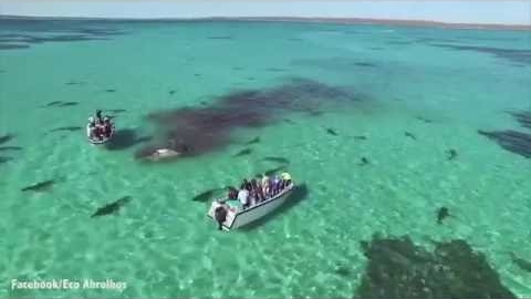 70头虎鲨分食鲸鱼 海水一片血红