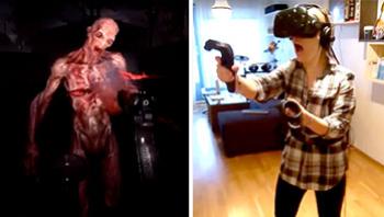 妹子第一次玩VR恐怖射击游戏,被吓成这样